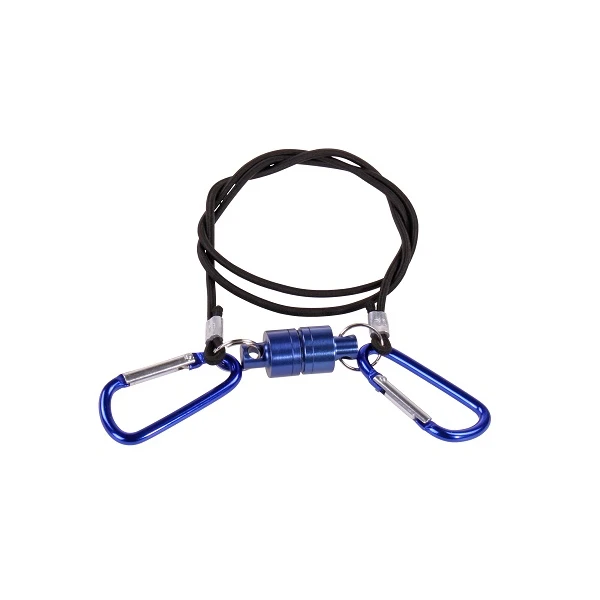 - dubbele karabijnhaken verbonden door middel van elastiek koord